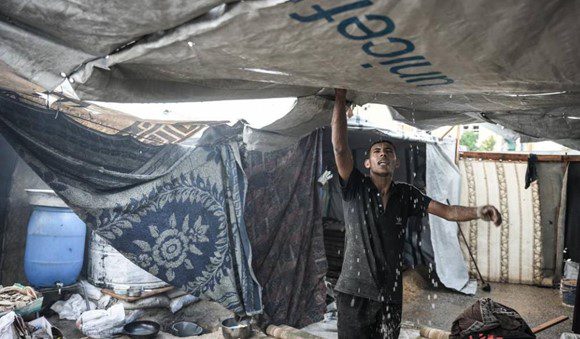 Dalam laporan tersebut disebutkan bahwa badai yang melanda Gaza dalam beberapa pekan terakhir telah menyebabkan ribuan tenda rusak atau tercabut, sehingga berdampak pada sekitar 235 ribu orang, berdasarkan perkiraan Perserikatan Bangsa-Bangsa (PBB).